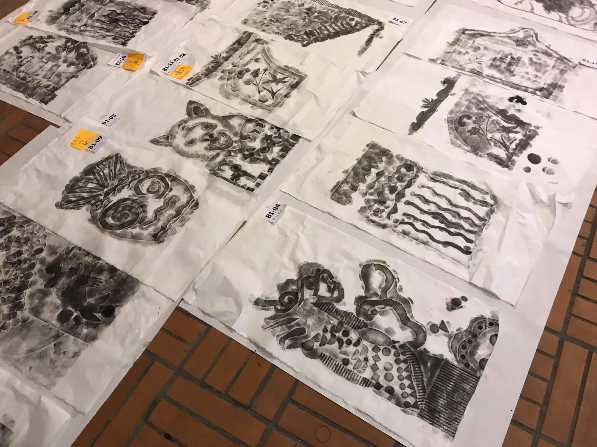 The workshop began with an introduction to the belief in the ceramic deity and the traditional architectural forms of temples. Participants used paper relief techniques and everyday textures to create embossed patterns, which were then transferred onto cotton paper through rubbing, akin to paper sculptures. The final workshop results were mounted and displayed as a large piece of artwork.